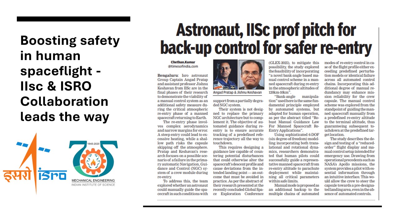 - Prof. Ashitava Ghosal has been selected for the “Prof. SATISH DHAWAN Chair Professorship.” Congratulations!