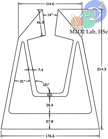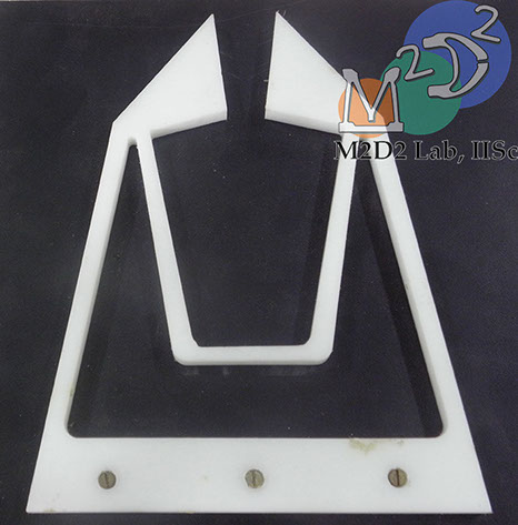 This is one of the earliest compliant grippers. By pulling the shorter vertical segment on the left towards the longer vertical bar, the gripper jaws come together. This demonstrates the principle of distributed compliance. It is one of the benchmark examples used in topology optimization of compliant mechanisms. It was also used for shape optimization.