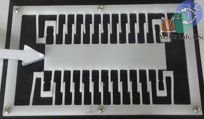 This is three-fold compliant slider used in an electrostatic comb-drive.